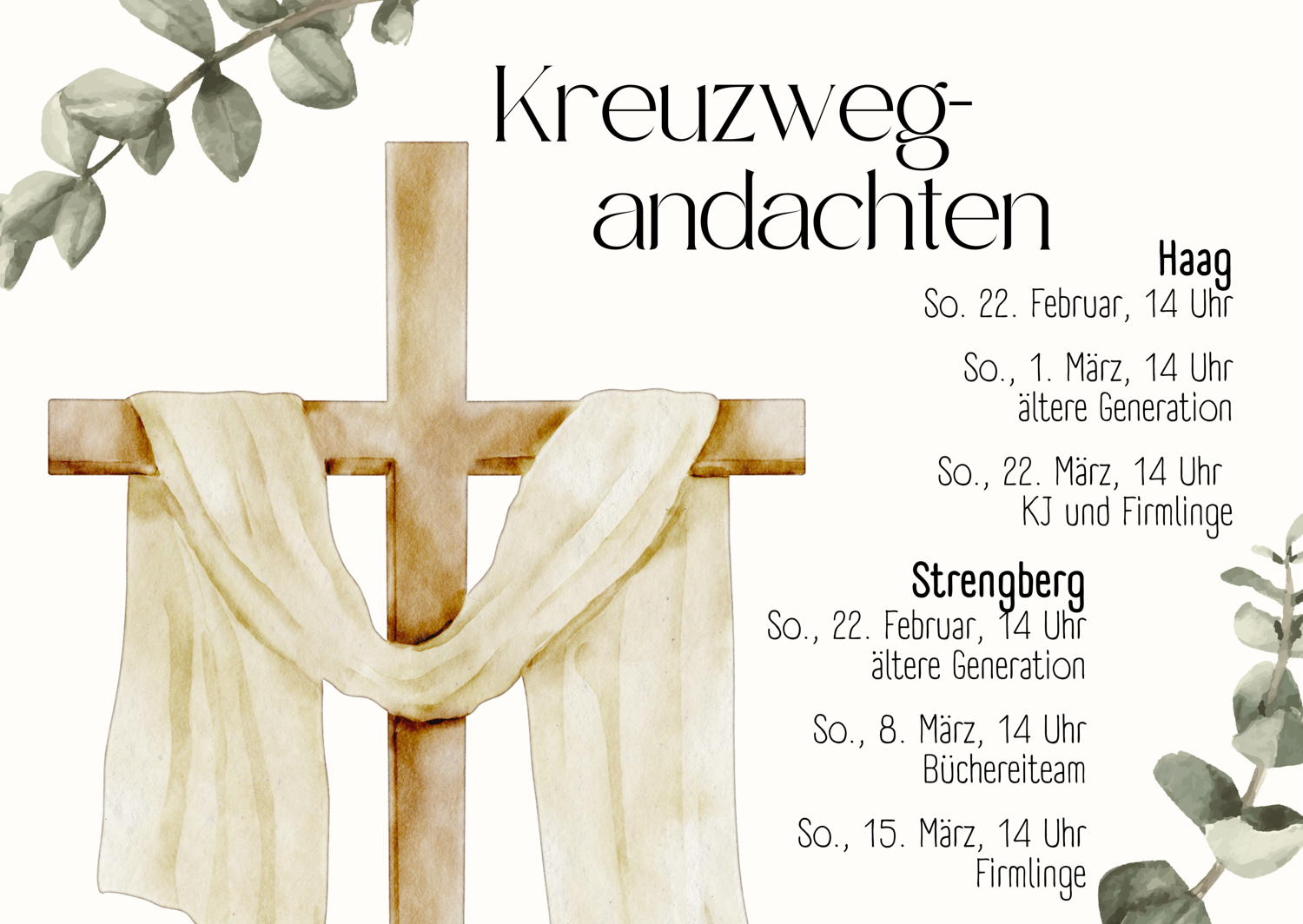 Gottesdienste in der Pfarrkirche Haag:
